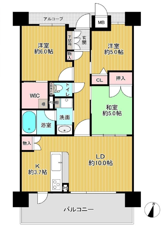 ● 3LDK(LD約10帖・K約3.7帖・洋5.2/洋5.0/和5.0)