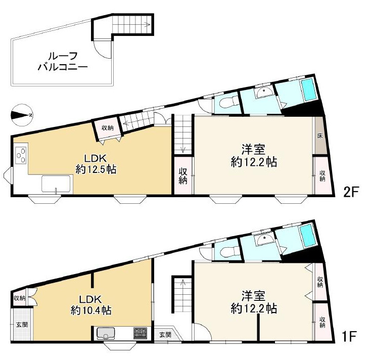 ●土地約26坪×延床約34坪、屋上バルコニー付き2LDK+LDKで二世帯・シェア運用◎