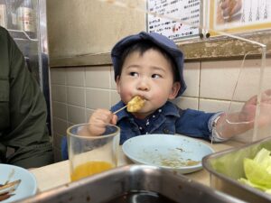 ↑ 当時まだ3歳前、近江屋本店で串カツを食べていた頃の写真です。私も今よりふくよかです苦笑