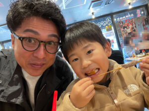 息子とあえてカウンター席で横並びで食べる串カツは楽しかったなあ。